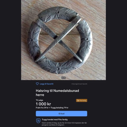 Sylvsmidja halsring i oksidert sølv til bunad fra Sigdal, Eggedal, Krødsherad, Valdres, Vest-Agder, Telemark.