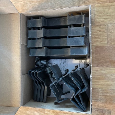 Originalt sett av Skiguard u-bøyler / Festebøyler som passer til Skiguard 825S (og sikkert flere andre Skiguard bokser). Iflg chatgpt og takboks.no kan man bore nye hull i en glassfibersone
