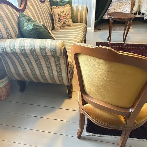 Stolene er trolig fra mellom 1930-1950 tallet. Bordet følger med stolene, men er ikke egentlig tilhørende stolene.