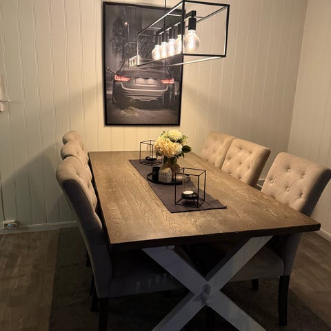 Spisegruppe fra Ellos med seks stoler. Som nytt, ingen bruksmerker