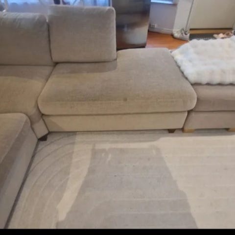 Har ikke eksakte mål, men kan fikse dette dersom det er ønskelig. Lagt ved bilde av tilsvarende sofa på IKEA.no