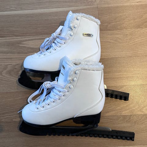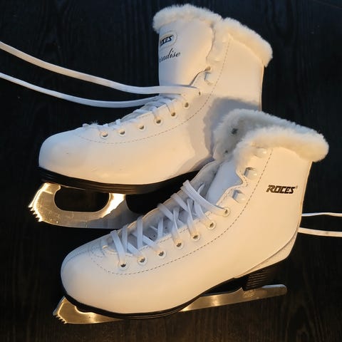 Roces Paradise skøyter i størrelse 35. Klassiske hvite skøyter med snøring og fast størrelse (EU 35 / 22,7 cm). Mykt, pelsliknende fôr på innsiden for økt komfort og varme rundt ankelen. Egnet til bruk på isbaner og generelt rekreasjonsbruk på is for barn eller mindre føtter. Laget som faste skøyter med stålskinne under sålen.Ny pris https://www.skatepro.no/232-37937.htm?stockcode=450704-001/39&gad_source=1&gad_campaignid=20829953912&gbraid=0AAAAADcmQjlbVN_ot6enfwioQOHhcOhrf&gclid=CjwKCAiAncvMBhBEEiwA9GU_fnm8OTZnkvYKYSD1-ZjcVJoc_XhXblhX9qzm5vZZeBvhhosN6eJawhoCzqYQAvD_BwE 1.149