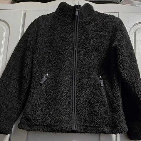 Lager 157 genser for dame i størrelse L. Genseren er svart og laget av polyester. Modellen har høy hals og glidelås foran, og stoffet har en myk, lodden overflate. Passer som hverdagsplagg eller som et ekstra lag på kjølige dager.