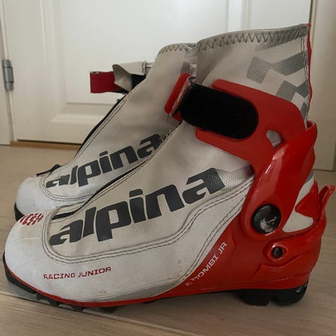 Alpina Coach Jr langrennsstøvler i størrelse 36. Modellen er laget for langrenn og skøyting, og passer til junior. Støvlene er i hovedsak hvite med røde detaljer og har snøring med glidelås-lukking foran samt ankelstøtte/ kombiskistøvel. Egner seg til bruk med kompatibelt bindingssystem for klassisk langrenn for barn/unge. Lillehammer.