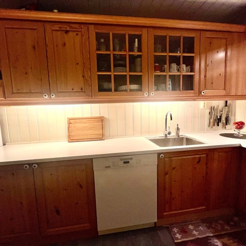 Gir bort et eldre kjøkken fra ca. 1980-tallet mot henting. Kjøkkenet har skapsdører i tre (heltre) og passer fint til oppussing av hytte, utleiebolig, verksted eller lignende.