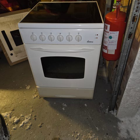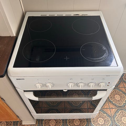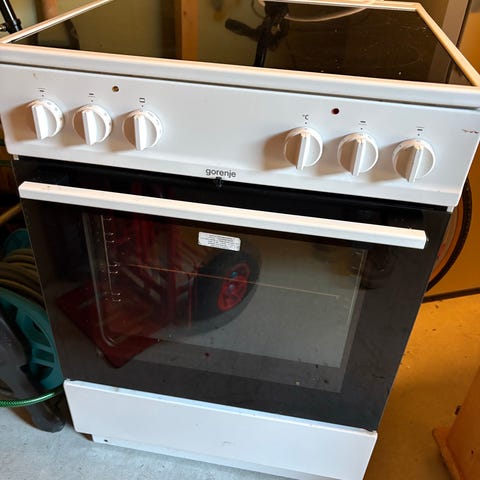 Gorenje keramisk komfyr med platetopp og stekeovn. Varmeelement i bunn av ovn virker ikke. Gis bort.
