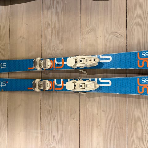 Stöckli Team alpinski 168 cm, 85 i gul farge med lette Fritchi bindinger. Leveres med monterte bindinger som vist på bildene.