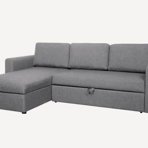 Praktisk og fin sovesofa med oppbevaring i sjeselong.