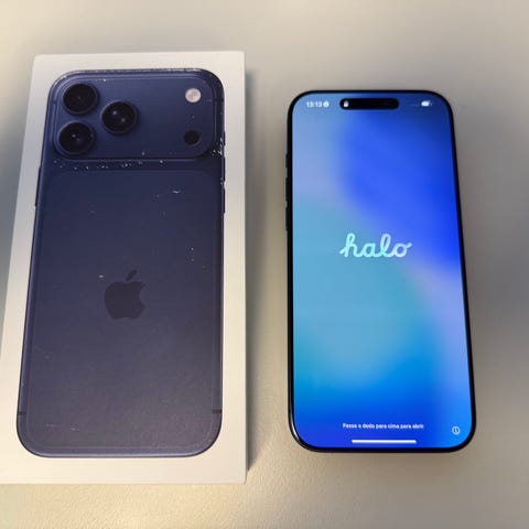 Apple iPhone 17 Pro max smarttelefon med 256 GB lagringskapasitet i blå farge.