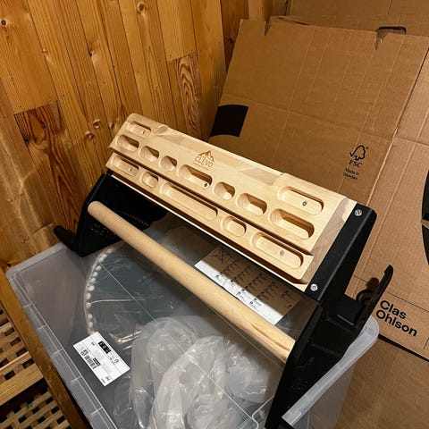 Metolius fingerboard klatretreningsbrett i tre. Brettet har flere lister og grep med ulike dybder, merket i millimeter, for variert finger- og grepstrening. Utstyrt med tau for oppheng. Egnet til innendørs klatretrening og oppvarming for klatrere som vil trene fingerstyrke og grep på et kompakt treningsbrett i tre.