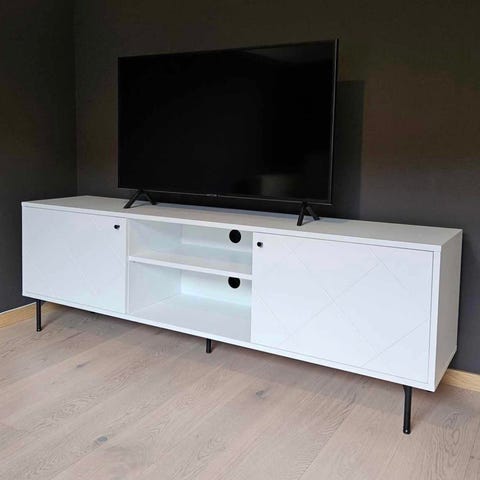 Pent brukt TV‑benk fra IKEA, VIHALS‑serien.