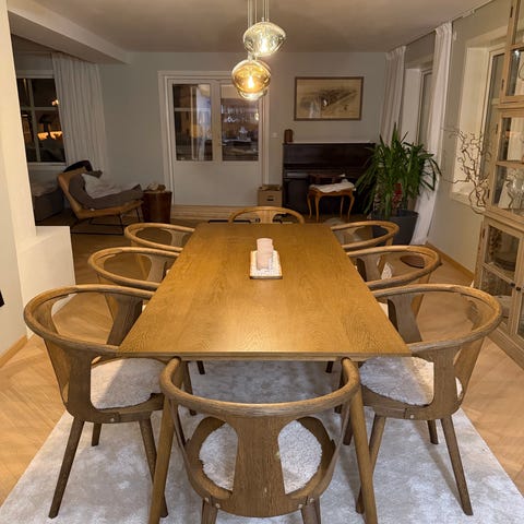 Noen bruksmerker, men har ikke vært til sjenanse for oss i hverdagen. Bytter bord da vi trengte et lengre et.