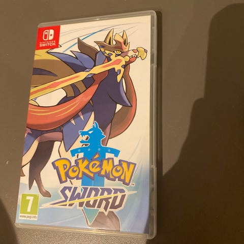 Fysisk utgave i eske med spillkassett. Spillet er merket med aldersgrense 7 år (PEGI 7). Pokémon Sword er et rollespill i Pokémon-serien tilpasset Nintendo Switch, der spilleren utforsker Galar-regionen, fanger og trener Pokémon og deltar i kamper.