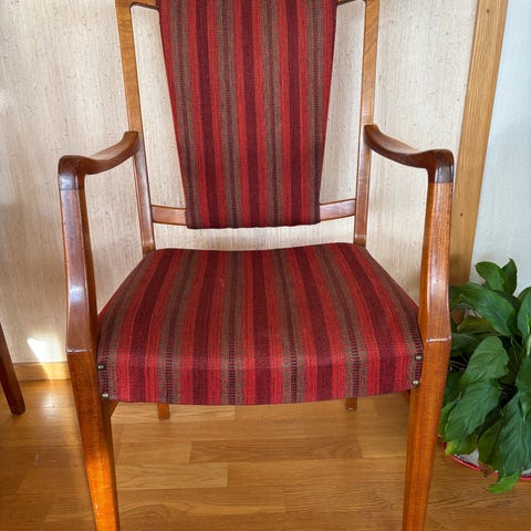 Stolene er gode å sitte i, og er helt i orden. Noen småflekker her og der. Gis bort da vi trenger flere stoler i foreningen og ikke har plass til denne typen "godstoler" lenger.