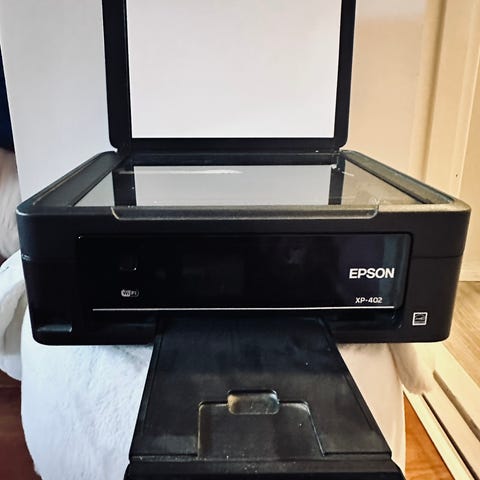Epson XP-2200 multifunksjonsskriver i svart. Enheten kombinerer skriver, skanner og kopimaskin i én kompakt løsning. Skriveren har toppmating for papir og frontskuff for utskrifter. Flatbed-skanneren gjør det mulig å skanne og kopiere dokumenter og bilder fra glassplaten under lokket. Passer til vanlig hjemme- og kontorbruk der det er behov for både utskrift og skanning/kopiering i én enhet.