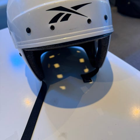 Reebok 5K ishockeyhjelm i størrelse M i hvit farge. Hjelmen har justerbar hakereim og ventilasjonshull rundt hele hjelmen. Innvendig polstring gir demping og komfort under bruk. Egnet til ishockey og annen isidrett der hjelm er påkrevd.