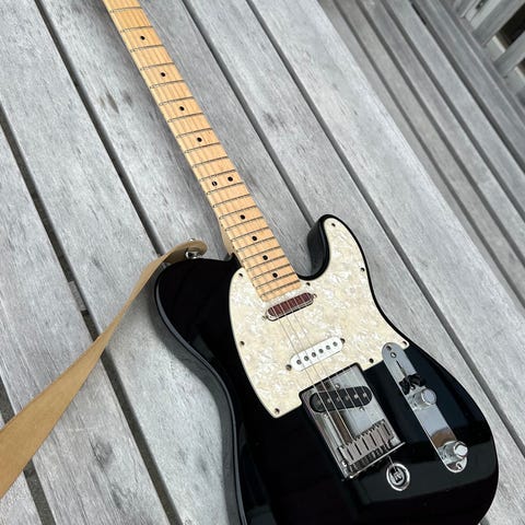 Telecasteren er godt brukt, 2014, eit par dingser på kropp og hals. Ikkje skjemmende. Bildene viser alt.