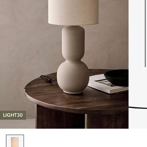 En flott bordlampe med en tung bettong fot i nøytrale farger.
