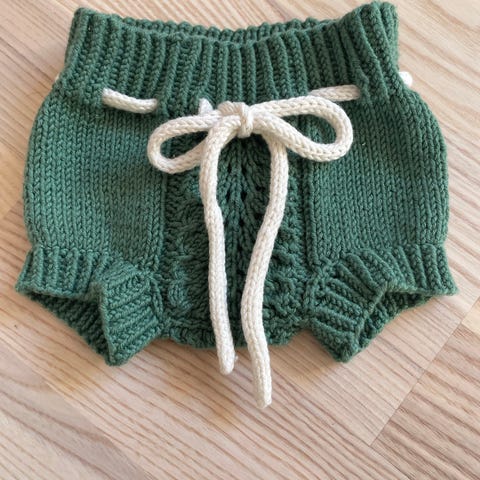 Søt, hjemmestrikket romper til baby. Tilsvarer nok str 62/68.