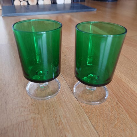 12 glass, 6 som er ca 9 cm høye. 6 som er ca 7 cm høye.