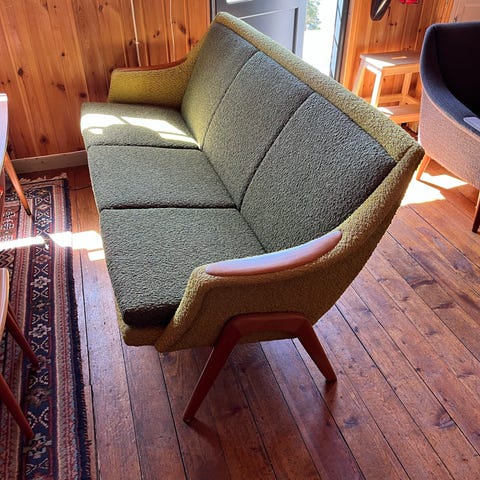 Skikkelig retro sofa selges, myk og behagelig. Så kul og perfekt retro vibe. Selges med tungt hjerte pga plassmangel.