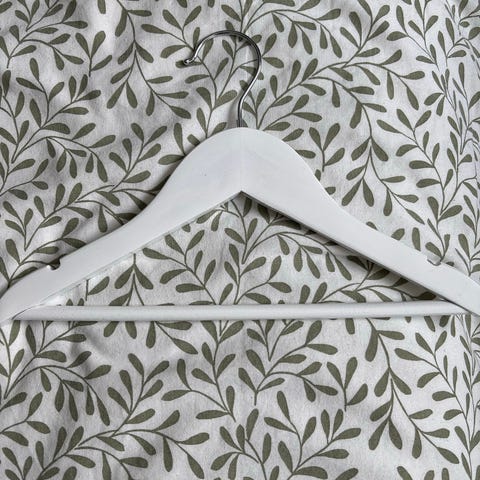 IKEA kleshenger i tre med metallkrok. Klassisk fasong som passer til oppheng av ulike typer klær. Egnet til bruk i garderobe eller skap.