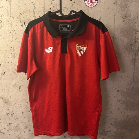 Nesten ny Sevilla drakt fra 2019-2020 sesongen med argentineren Ever Banega på ryggen i originalt trykk i størrelse medium. Sevilla vant Europa League i denne drakten mot Inter i finalen.