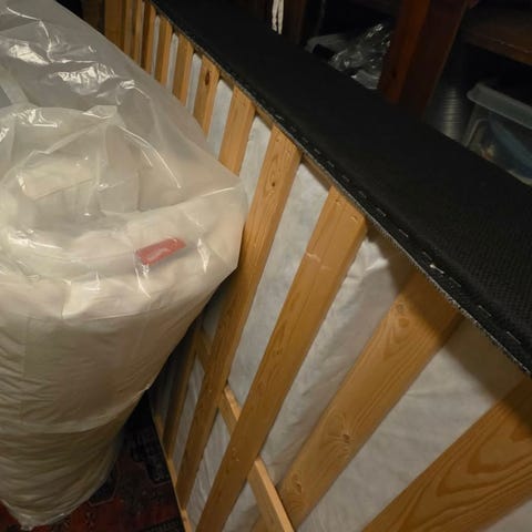 Overmadrassen er synlig brukt på den ene siden, med misfarging. Men trekket kan tas av og vaskes eller byttes. Den vaskes nå så derfor ikke bilde av den siden, men det kan du få om du vil.