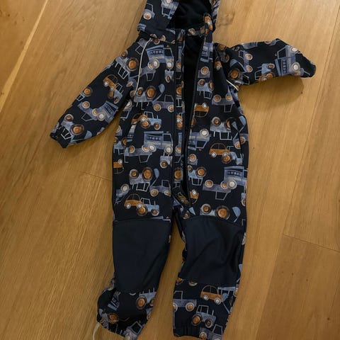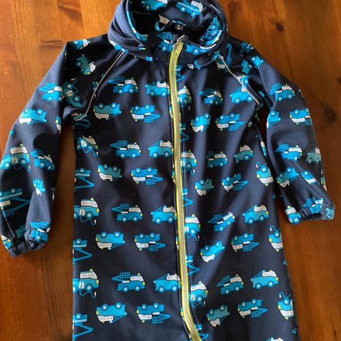 Name it Playtech parkdress for gutt i størrelse 80. Dressen er blå med bil-mønster og har hette.