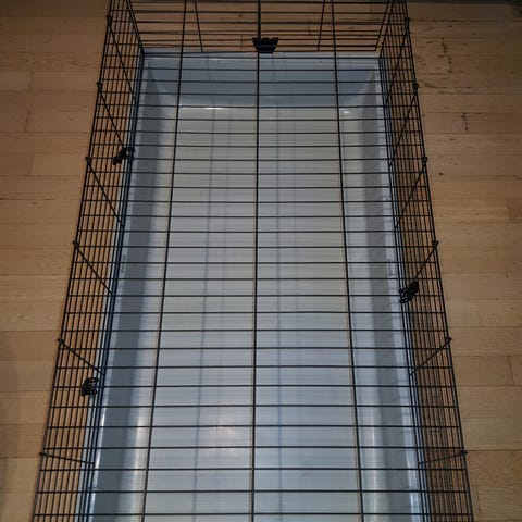 Svært lite brukt - kun brukt som ekstra bur og på ferie ved et fåtall tilfeller. Avsatsen inne i buret, flaske og høyholder følger ikke med.