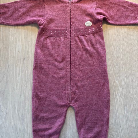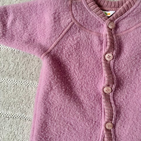 Nøstebarn selebukse i ull for barn, unisex. Bukse i størrelse 68 i rosa farge, laget av 100 % ull. Modellen er ermeløs med seler og har trykknapper langs innsiden av bena for enkel av- og påkledning og bleieskift. Egnet som innerlag eller mellomlag til baby i kjøligere vær.