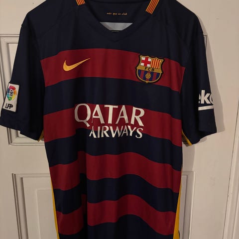 Nike FC Barcelona hjemmedrakt fotballtrøye Neymar Jr 11 i blå og rød med horisontale striper. Trøyen har klubbemblem på brystet, Nike-logo og sponsortrykk foran. På ryggen står Neymar Jr og nummer 11 med trykk, samt UNICEF-logo nederst. Kortermet modell med V-hals og påsydde La Liga-merker på ermene. Egnet som supporterdel og til fritidsbruk for fotballinteresserte.