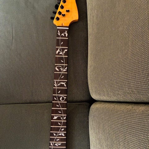 Vurderer å selge min jem fra 1988. Sjelden og ettertraktet steve vai signartur gitar. Denne har hengt på veggen min de siste 20 år så trenger nok nye strenger og en service før bruk! Noen merker har den. Se bilder. Selges uten kasse men kan følge med en gigbag. Kan prøves på kongsberg.