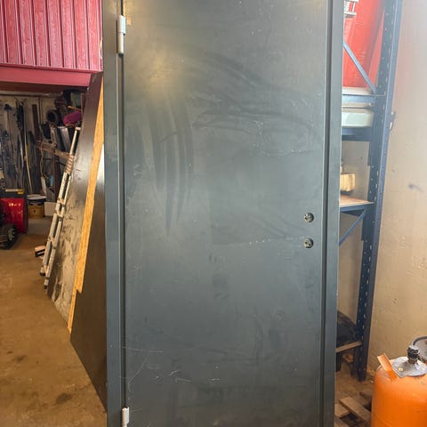 NorDan ytterdør i svart utførelse. Døren har bredde på rundt 100 cm og høyde på rundt 210 cm, basert på målebåndet på bildene. Leveres med moderne låskasse og elektronisk kodelås på utsiden, samt dørhåndtak. Egnet som ytterdør eller bod-/industridør der det er behov for en robust ståldør. Eventuelle karmmål, hengsling og låssystem bør kontrolleres nærmere ved overtakelse.Type Løven.