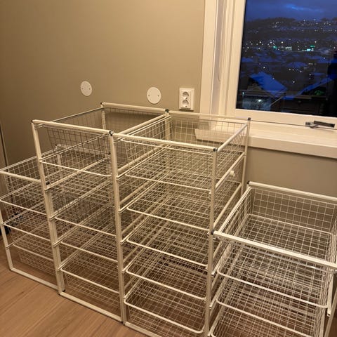 IKEA Jonaxel stativ med nettingkurver og hyller selges.