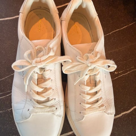 Gant sneakers i hvit farge i størrelse 39. Noen bruksmerker da de er brukt en sesong, fortsatt mye bruk igjen! Original pris 1795,-
