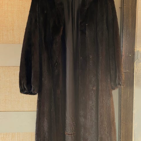 Saga selected mink kåpe, veldig fin glatt og tett pels. Naturlig rødbrun farge (ikke farget mink). Ingen skader/hull på pels. “Saga Selected” er en kvalitetsklasse innenfor denne systematikken. Det betyr at pelsen har høy kvalitet, med jevn, tett underpels og gode naturlige egenskaper – ofte brukt om pels som oppfyller mer krevende standarder enn vanlig “Saga”-kvalitet.