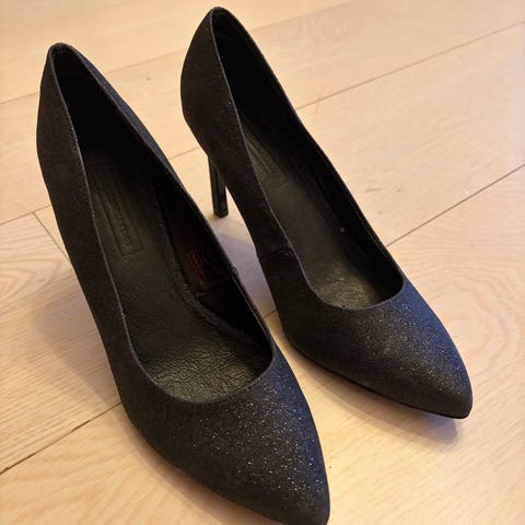 Roots pumps med 7,5 cm høye hæler i størrelse 37. Skoene har en beige glitterfinish og medium høy hæl med liten platå foran. Helt nye og aldri brukt. Selges kr. 100. Porto kommer i tillegg.