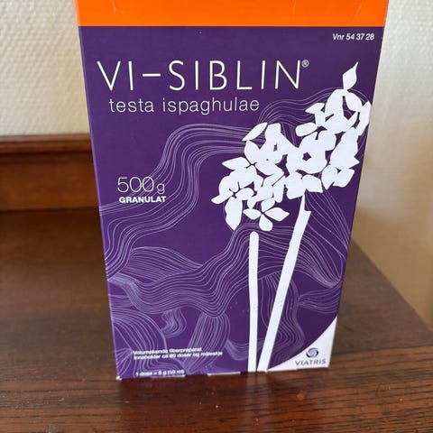 Vi-Siblin tefibre i eske med 50 porsjonsposer. Produktet inneholder loppefrøskall (psyllium) i teform. Egnet for tilberedning som drikke ved behov for fibertilskudd. Esken er originalforpakket fra produsent med informasjon om bruk og innhold på emballasjen.
