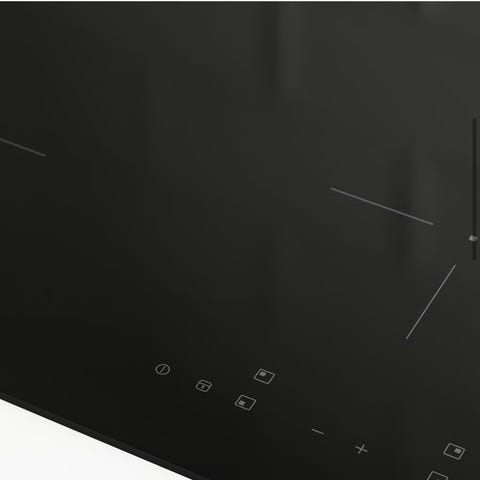 CV492105 Flex induksjonstopp med integrert ventilasjon 90 cm bred, med automatisk ventilasjon, fleksible koke soner og mulighet for montering med flush integrasjon. Prisen er komplett (koketopp inkl. brytere).