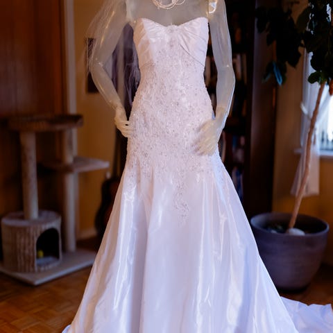 Brudekjole for dame i ivory farge, størrelse S.