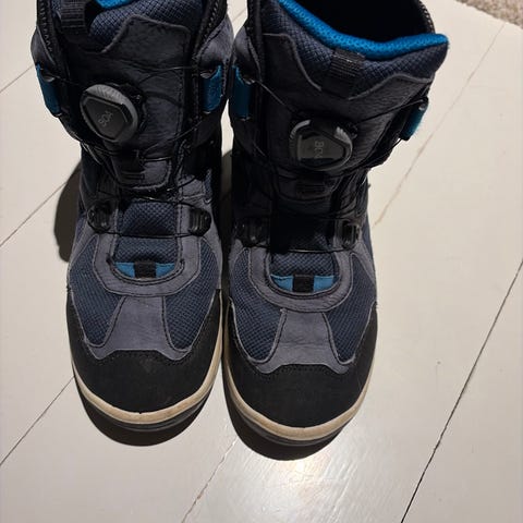 Blå Ecco Gore-Tex vintersko, str. 40. Gode og varme. BOA-lås og refleks. Skoene er i grei stand, det er ikkje hol på foret. Dei er nyvaska.