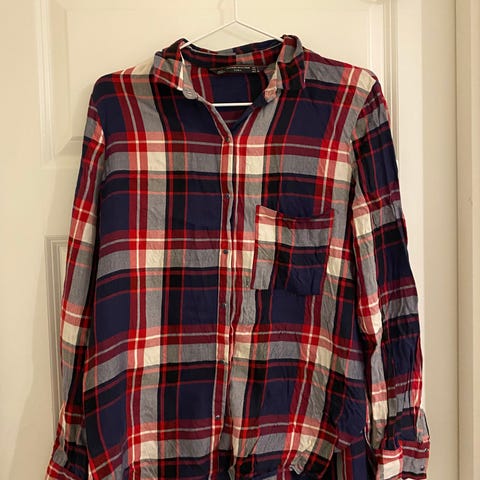 Den har en avslappet passform, klassisk krage og knappestolpe hele veien ned.