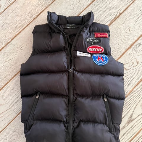 Vesten er svart med vattert dunfyll og har hette som kan tas av.Innsiden har mønstret fôr med J. Lindeberg-logo. Modellen har glidelås i front, brystlomme med glidelås og sidelommer. Egnet som ytterplagg på kjølige dager eller som et ekstra lag over genser eller jakke.
