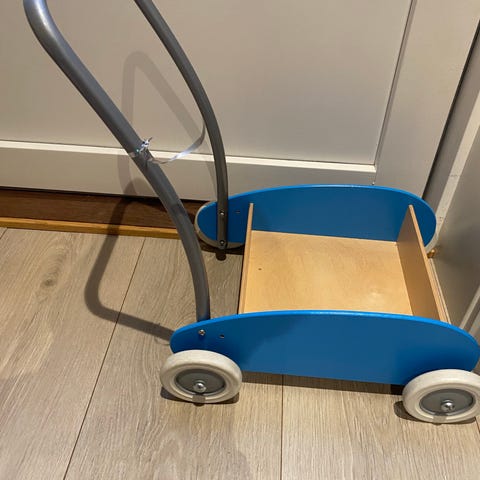 Lær å gå-vogn selges kr 90. Mangler tre klosser som skal være med. Hentes i Skien eller sendes med Fiks ferdig.
