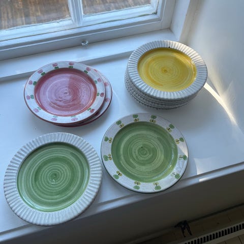 Keramikk "panne" 18,5x18,5cm.(26cm m hank), Morsomt fiskemotiv. Hankenhar vært limt, men synes ikke noe særlig.