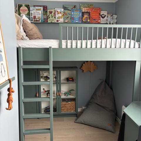Skeidar loftseng barn hvit med oppbevaring og skriveplass