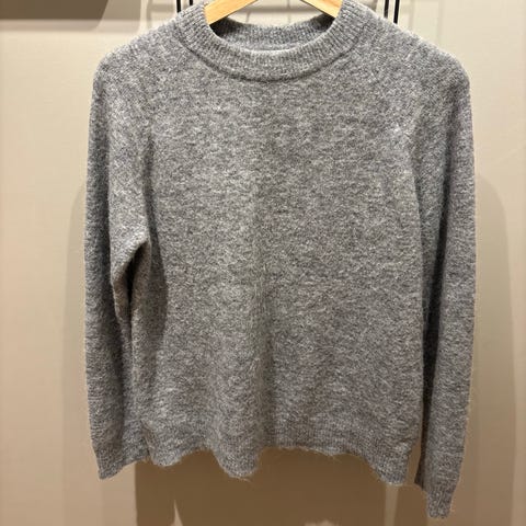 Delikat og klassisk genser fra Samsøe Samsøe i modellen «Lauri». Den er i en fin gråmelert farge som passer til alt.