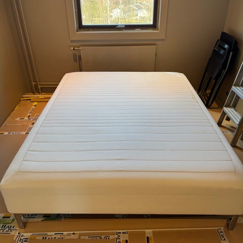 IKEA madrass i hvit farge. Rektangulær madrass som passer til standard sengestamme i tilsvarende størrelse. Egnet som liggeflate i soverom eller gjesterom. Trekket fremstår lyst og nøytralt, og madrassen kan brukes med vanlig sengetøy og overmadrass etter behov.