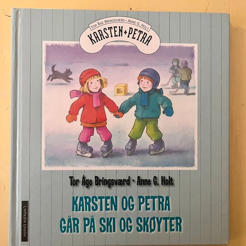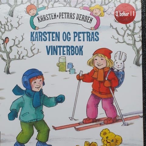 Karsten og Petra vinterbok bildebok med tre historier i én bok. Inneholder fortellingene «Karsten og Petra på skiskole», «Karsten og Petra går på skøyter» og «Karsten og Petra har Lucia-fest».